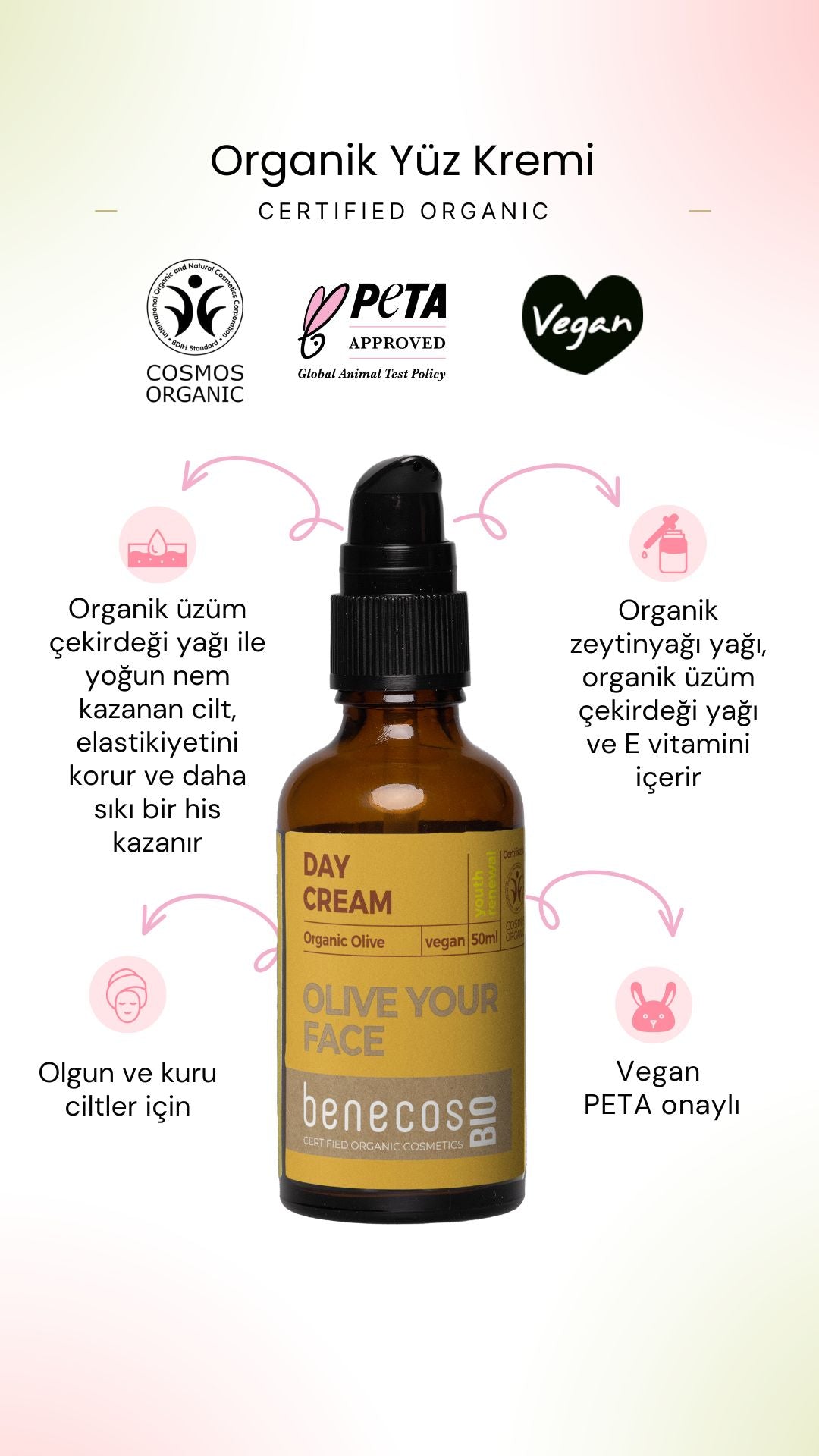 - Organik Yüz Kremi : (50 ml) Cildinizi nemlendirir ve yumuşaklık sağlar.