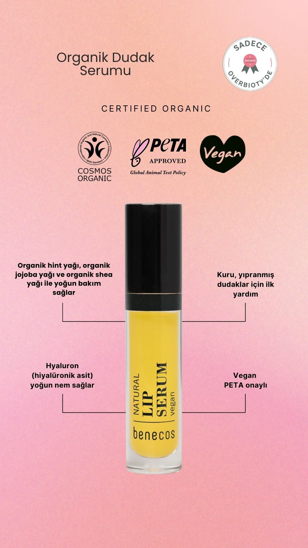 - Organik Dudak Serumu (4,8 ml) : Dudaklarınızı besler ve kuruluğa karşı bakım yapar.